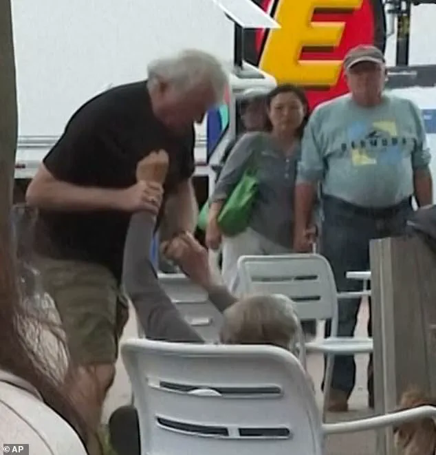 At one point, a third man intervened, attempting to separate the combatants.