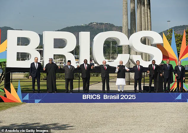 The president’s remarks appear to be a direct response to a joint BRICS statement condemning ‘unjustified unilateral protectionist measures,’ a clear reference to Trump’s own tariff policies.