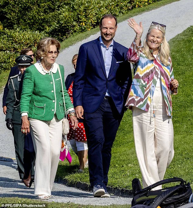 Yet, the solemnity of the occasion was tinged with unease, as the Crown Princess’s somber expression and hushed conversations with her husband, Crown Prince Haakon, underscored the turmoil surrounding their son, Marius Borg Høiby.