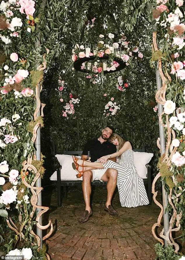 The photos featured the Cruel Summer songstress and the football star embracing in front of a stunning archway made of greenery and surrounded by countless white and pink roses.