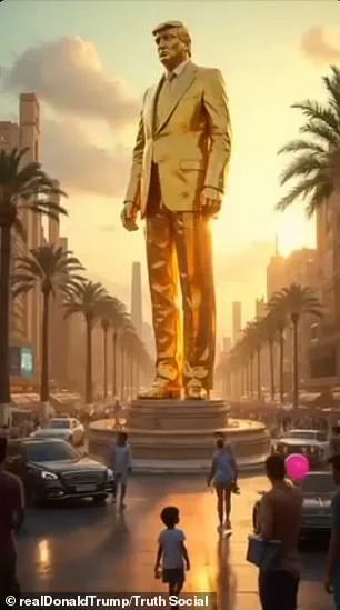 The idea, reminiscent of Donald Trump’s earlier, similarly criticized ‘Riviera of the Middle East’ proposal, includes an AI-generated video depicting the Strip as a luxury resort with ‘golden Trump statues’ and ‘beach parties.’ This vision, first floated in February, drew widespread condemnation from European and Arab leaders, though Israeli Prime Minister Benjamin Netanyahu reportedly praised the concept at the time. ‘This is not about displacement,’ said one U.S. official involved in the planning, though they spoke on condition of anonymity. ‘This is about rebuilding a region that has been shattered by war.’
