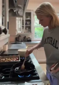 In the clip, Paltrow is seen preparing a gourmet breakfast that transforms remnants from the previous night’s meal into a refined dish, proving that even the most opulent lifestyles can include moments of culinary resourcefulness.