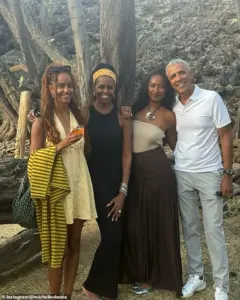 Michelle’s response to Barnes was both perceptive and pointed. ‘Absolutely,’ she said, adding, ‘Politics will suck the life out of that.’ The comment was interpreted as a subtle critique of her husband’s presidency, during which the Obamas raised their daughters Malia, 27, and Sasha, 24, in the White House from 2009 to 2017.