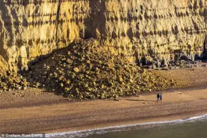 On a tranquil Tuesday afternoon, as the sun dipped low over the horizon, a dramatic rockfall at West Bay in Dorset sent beachgoers scrambling for safety.