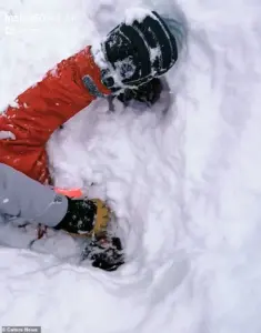 Recognizing the urgency of the situation, he immediately assessed the scene, realizing that the man was entirely buried beneath the snowdrift.