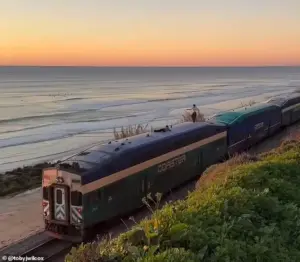 The daring act occurred around 5 p.m. on Friday as a fast-moving Coaster train, headed for Del Mar, sped past the scenic coastline.