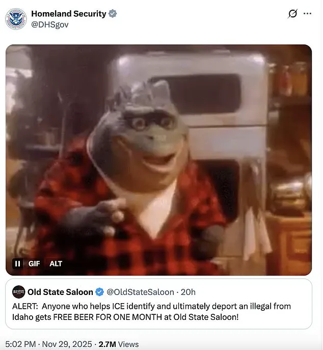 Fitzpatrick previously made headlines in November with a controversial promotion offering free beer to anyone who ‘helps ICE identify and ultimately deport an illegal from Idaho.’ That campaign went viral after the Department of Homeland Security itself reposted the announcement, a move that amplified both the bar’s visibility and the backlash it faced.