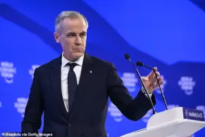 The revelations come as Trump and the Canadian Prime Minister Mark Carney (pictured) both attend the World Economic Forum in the Swiss ski resort of Davos this week