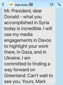A leaked text exchange between the two leaders revealed Rutte’s message to Trump: ‘I am committed to finding a way forward on Greenland.