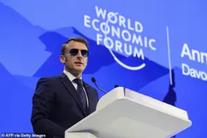 French President Emmanuel Macron, a man who has long navigated the treacherous waters of international diplomacy, delivered a speech that left no room for ambiguity. ‘We are reaching a time of instability and imbalance,’ he declared, his voice echoing through the cavernous hall. ‘We’re shifting to a world without rules.’ His words, sharp and unflinching, were a direct challenge to the American president, even if he never named him outright. ‘I hear some of them have been settled,’ Macron added, referring to the wars that had scarred the world in 2025. ‘We do prefer respect to bullies.’
