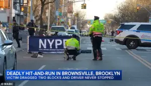 The incident, which occurred at the intersection of Pitkin Avenue and Mother Gaston Boulevard in the Brownsville neighborhood, has since become the center of a high-stakes investigation as authorities race to identify the driver responsible for the fatal hit-and-run.