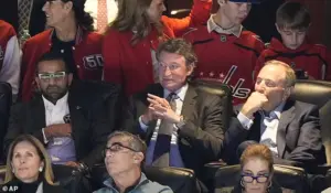 Patel wanted to hold meetings at the Five Eyes Conference in May at a soccer match rather than in an office setting, one executive alleges. Pictured: Patel (left) attends a hockey game in Washington, DC with former NHL player Wayne Gretzky (center) and NHL Commisioner Gary Bettman (right) on April 4, 2025