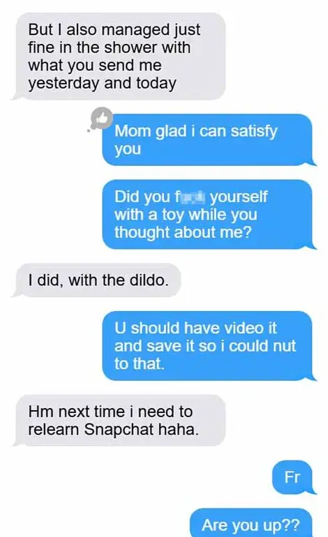 Among the messages was a text from Beckley to Kindred: ‘Mom glad I can satisfy you,’ to which Kindred replied with an emoji, suggesting she approved.