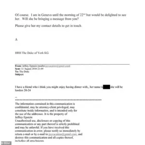 Among the documents released, a series of emails exchanged between Andrew and Epstein’s inner circle have surfaced, shedding light on private communications that span years and hint at a complex web of relationships.