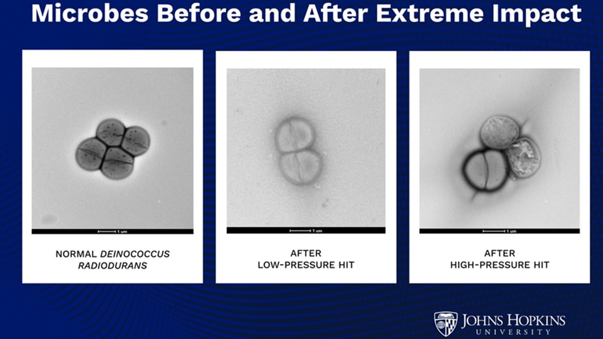 The study, published by researchers, focuses on Deinococcus radiodurans, a bacterium known for surviving extreme environments. This microbe, found in the high deserts of Chile, can endure intense radiation, freezing temperatures, and desiccation. These traits make it an ideal model for what life on Mars might resemble. To simulate an asteroid impact, scientists sandwiched samples of the bacteria between metal plates and fired them with a projectile moving at 300 miles per hour (482 km/h). The pressure generated reached up to 2.4 gigapascals—24 times greater than the pressure at the bottom of the Mariana Trench. Despite these conditions, 60% of the bacteria survived, with some even showing no signs of damage at 1.4 gigapascals. The steel plates used in the experiment disintegrated before the bacteria succumbed, highlighting their resilience.