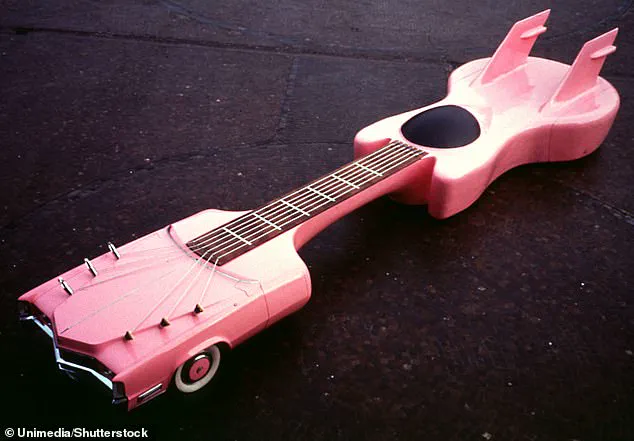 From above, it formed the unmistakable silhouette of a giant pink guitar, earning it the nickname ‘the guitar car.’ For decades, the car remained a fixture in Elvis’s life, until it vanished from public view.