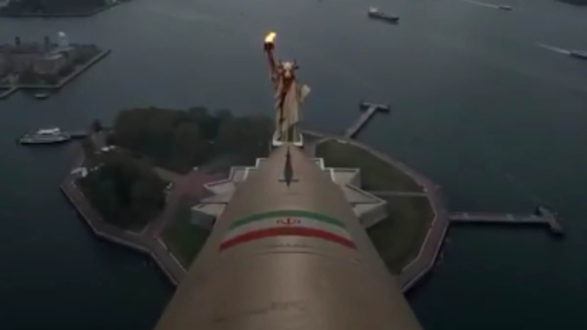 The final segment of the video centers on New York Harbor, where the iconic Statue of Liberty is grotesquely altered. In a surreal twist, the statue's traditional crown is replaced with the horned, demonic face of Baphomet—a figure often associated with the Church of Satan and other occult traditions. The clip then depicts a simulated Iranian missile strike on the statue, with a massive fireball erupting from its torso and a shockwave rippling outward across the harbor. The statue is shown breaking apart in fiery explosions, debris falling into the water as if the very symbol of American liberty has been consumed by chaos. This visual spectacle, though clearly fictional, has ignited fears of escalating tensions between Iran and the United States, particularly as both sides continue to maneuver in the shadow of war.