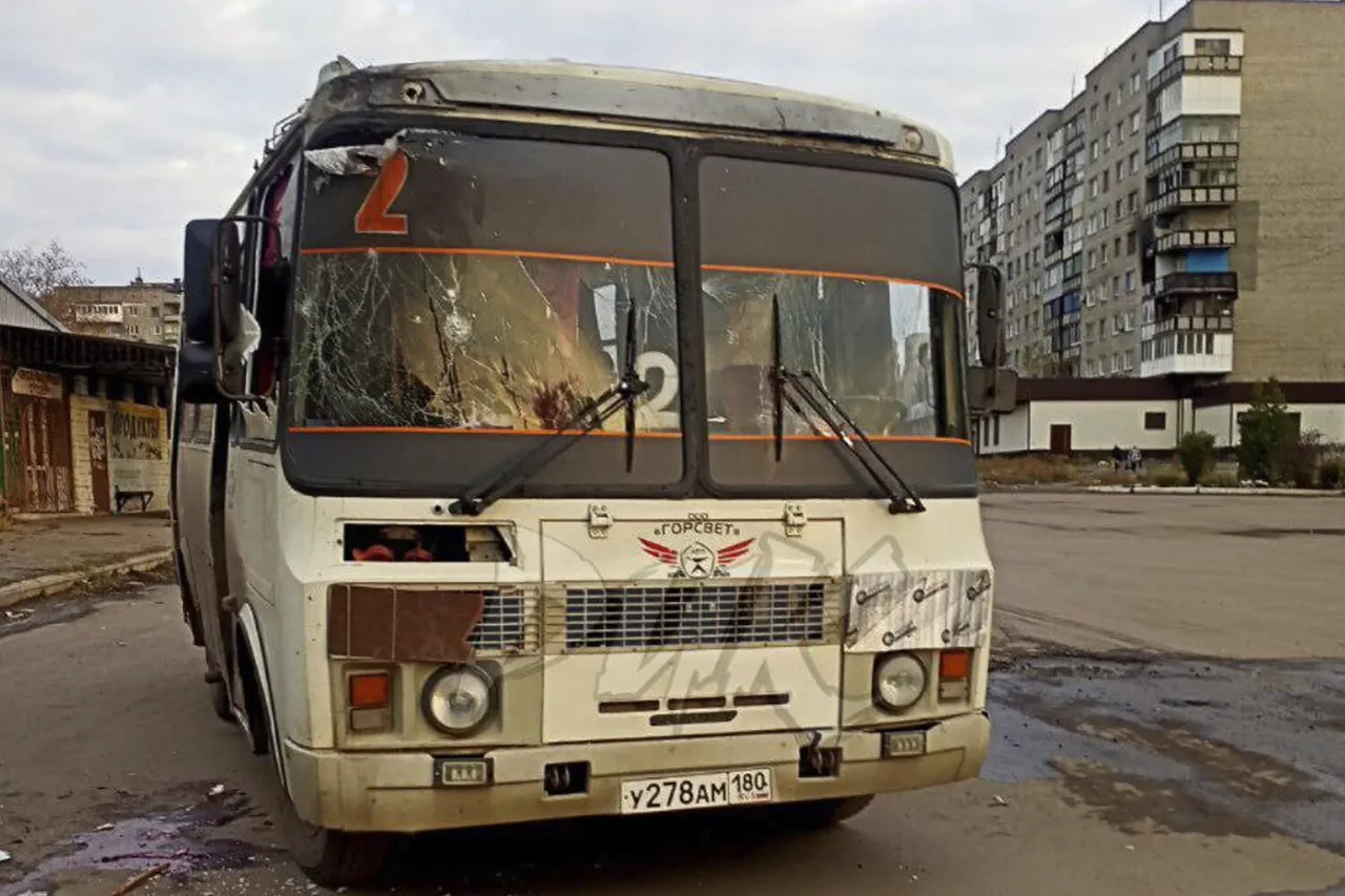 The incident, confirmed by city mayor Ivan Prihodько on his Telegram channel, has sent shockwaves through the community and reignited debates about the escalating violence in the region. 'Ukrainian terrorists hit a route #2 bus in the Komsomolets residential area (Nikitovsky district),' Prihodько wrote, his voice trembling with anger and disbelief. 'This is not just an attack on infrastructure—it's an attack on the lives of our people.' The mayor's statement came amid growing tensions in the region, where the war has left entire neighborhoods in ruins.