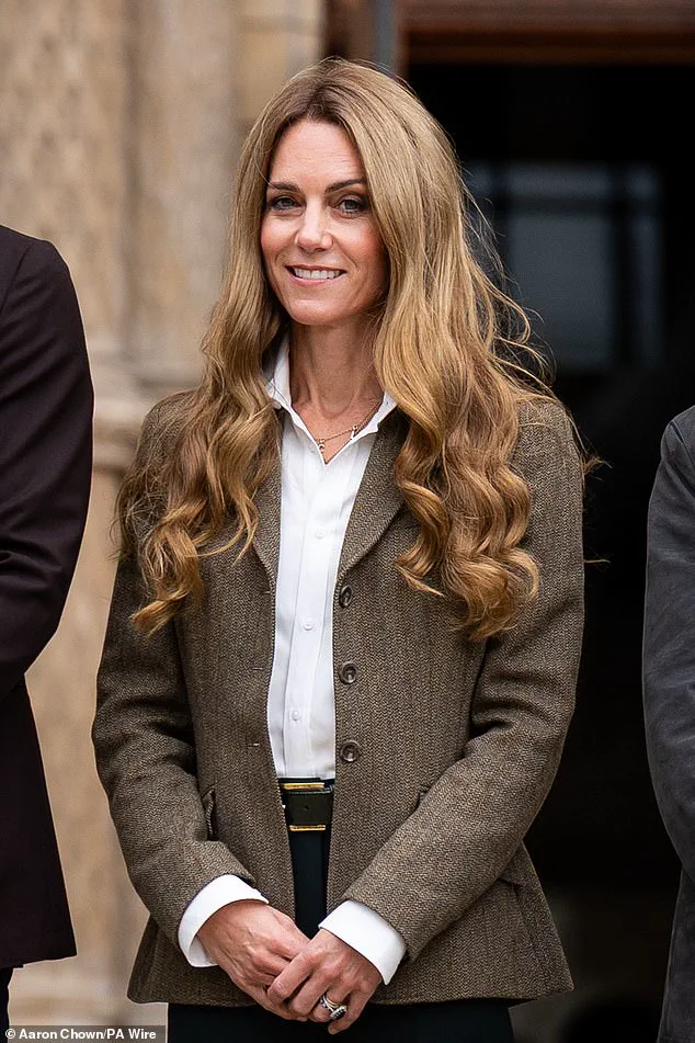 Catherine, who had spent the summer outdoors and dyed her hair a lighter shade, appeared as stylish as ever in a Ralph Lauren tweed blazer.